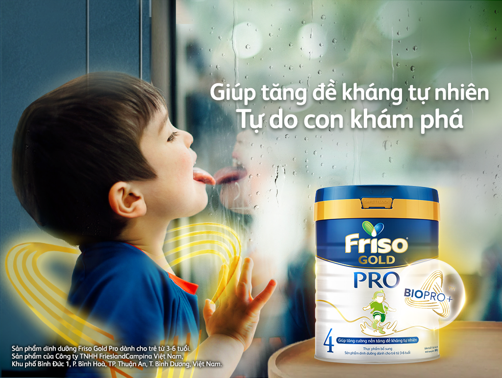 - Friso Gold Pro được bổ sung hệ dưỡng chất BioPro+ vượt trội, kết hợp Probiotic, HMO và GOS. Hệ dưỡng chất này giúp nuôi dưỡng và gia tăng lợi khuẩn trong đường ruột, cân bằng hệ vi sinh, từ đó hỗ trợ hệ tiêu hóa khỏe mạnh và tăng cường đề kháng tự nhiên cho bé, giúp bảo vệ bé yêu trước các tác nhân gây hại.
