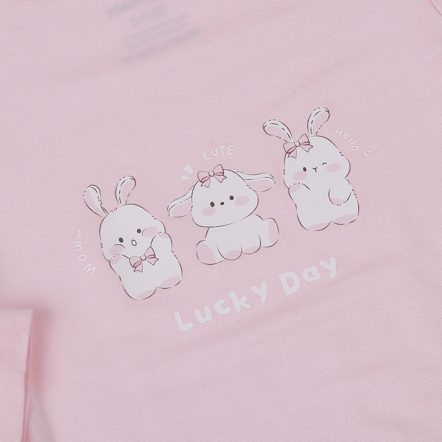 Chiếc áo được thiết kế với cổ 3 phân nhẹ nhàng, vừa đủ để giữ ấm cổ bé mà không gây khó chịu. Màu hồng nhẹ nhàng kết hợp với hình in 3 chú thỏ và chữ “Lucky day” giúp áo trở nên dễ thương mà không quá cầu kỳ. Họa tiết nhỏ nhắn, xinh xắn, phù hợp bé gái.