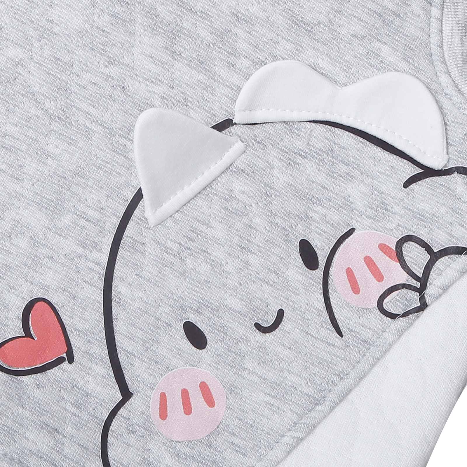 Phần cổ tim hiện đại kết hợp họa tiết thú dễ thương cùng chi tiết tai 3D nổi bật giúp chiếc áo thêm phần đáng yêu và thu hút.