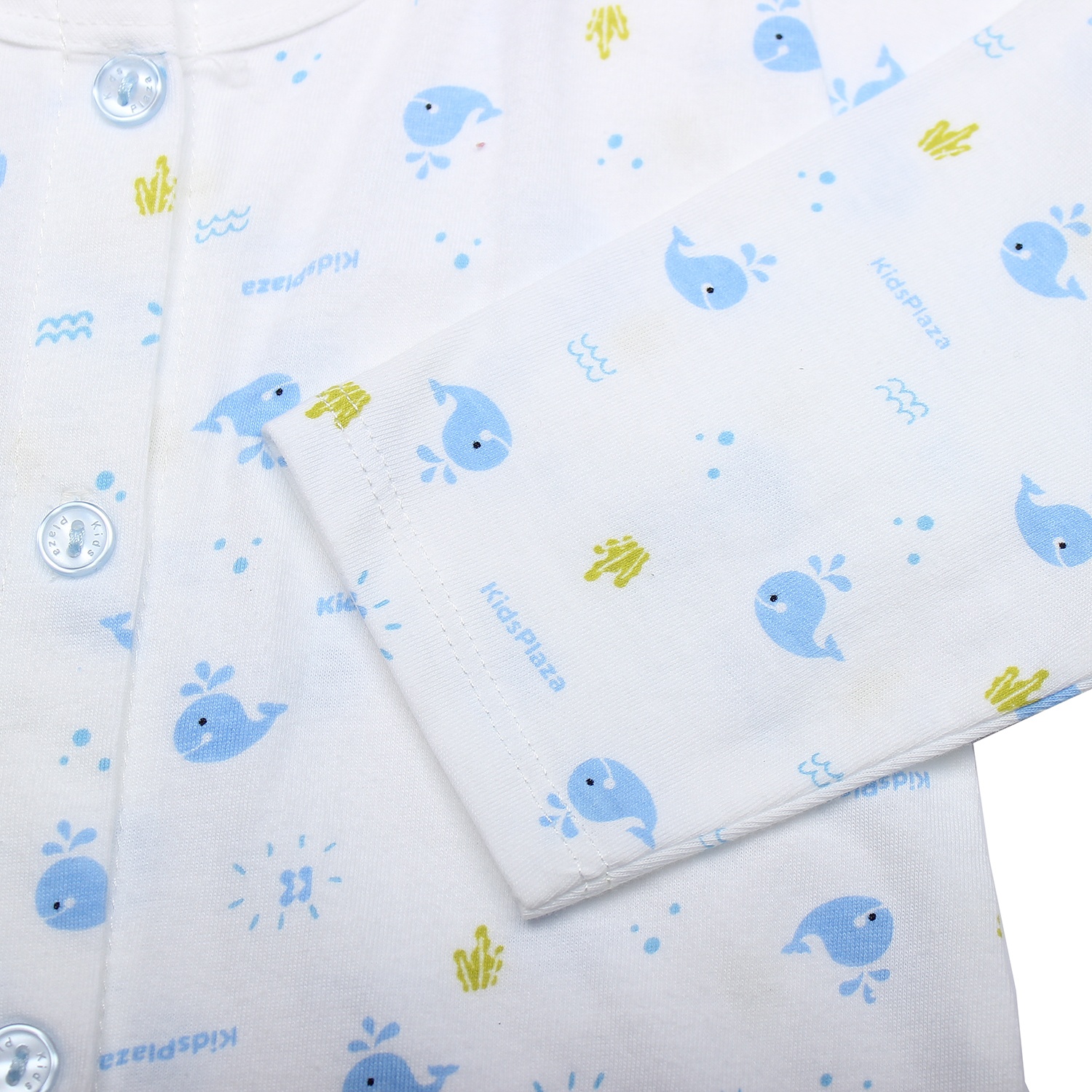 Chất liệu vải cotton 100% USA mềm mại, an toàn kết hợp thiết kế cúc cài giữa tiện lợi vừa an toàn cho bé vừa chăm sóc bé dễ dàng hơn áo sơ sinh dài tay KidsPlaza in hình chú cá heo (Trắng xanh) sẽ là sự lựa chọn cần thiết cho mẹ có bé trong giai đoạn từ 0-24 tháng tuổi. Hơn nữa trên áo in hình chú cá heo xinh xắn trên nền trắng khiến bé càng dễ thương và đáng yêu hơn khi mặc.