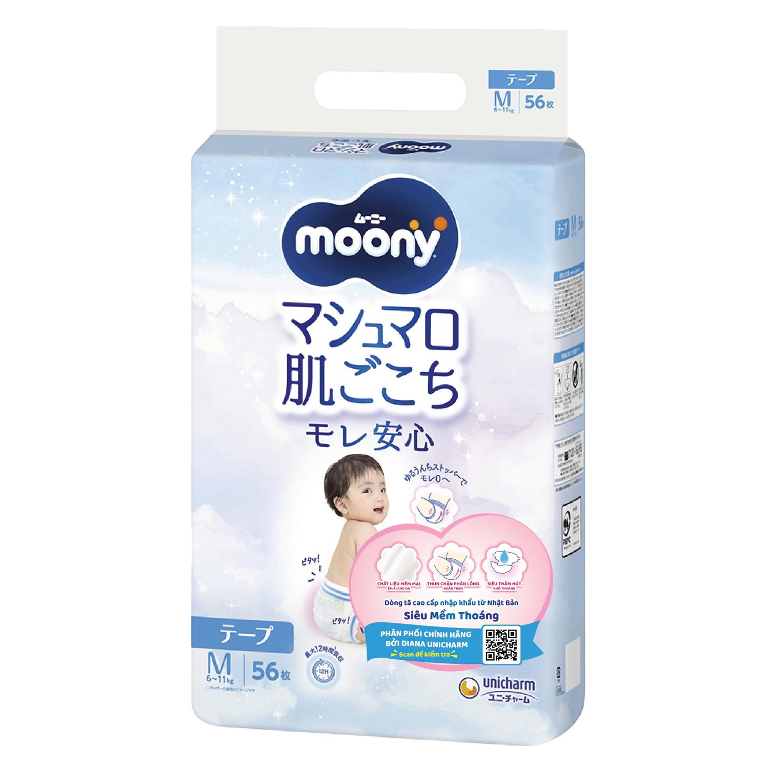Moony là thương hiệu cao cấp nhập khẩu trực tiếp từ NHÀ SẢN XUẤT TÃ SỐ 1 NHẬT BẢN - Tập đoàn Unicharm. Có mặt trên thị trường gần 40 năm, Moony đã nhận được sự yêu mến của các bà mẹ Nhật Bản nhờ những tính năng vượt trội và công nghệ tân tiến với rất nhiều giải thưởng danh giá.