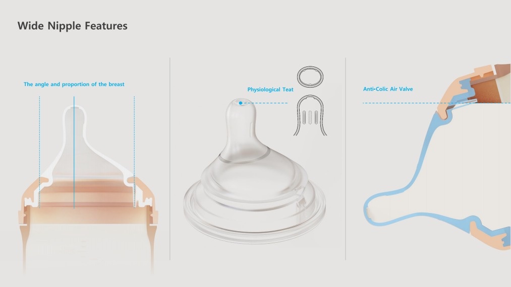 + Đặc biệt, núm ty tích hợp van khí thông minh giúp giảm nguy cơ đầy hơi, đau bụng và nôn trớ, tạo cảm giác thoải mái nhất cho bé trong mỗi lần bú.