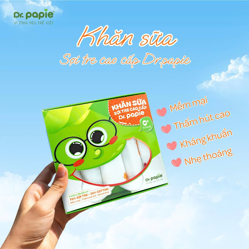 Khăn Sữa Sợi Tre Dr.Papie: Kết hợp 70% sợi tre và 30% cotton, khăn cực kỳ mềm mại, thấm hút tốt, và mang đặc tính kháng khuẩn tự nhiên. Sản phẩm hạn chế co rút, không bị cứng hay ố vàng sau khi giặt, đảm bảo độ bền lâu dài. Khăn đạt chứng nhận QCVN 01:2017/BCT – An toàn tuyệt đối cho da trẻ sơ sinh, không xơ cứng sau giặt!