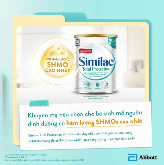 Với hơn 30 năm nghiên cứu chuyên sâu về HMOs, các nhà khoa học Abbott tiên phong giới thiệu, Similac Total Protection 2+ chứa hàm lượng 5HMOs cao nhất, được ghi nhãn phù hợp cho bé sinh mổ, cụ thể: