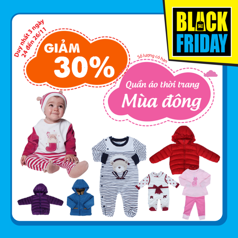 Black Friday – Ngày hội mua sắm lớn nhất năm đã tới Kids Plaza với hơn 1000 mã hàng giảm cực sốc tới 50%.