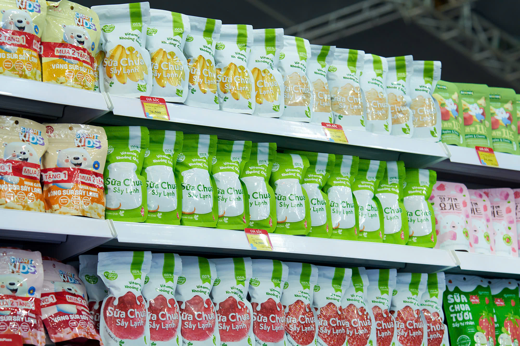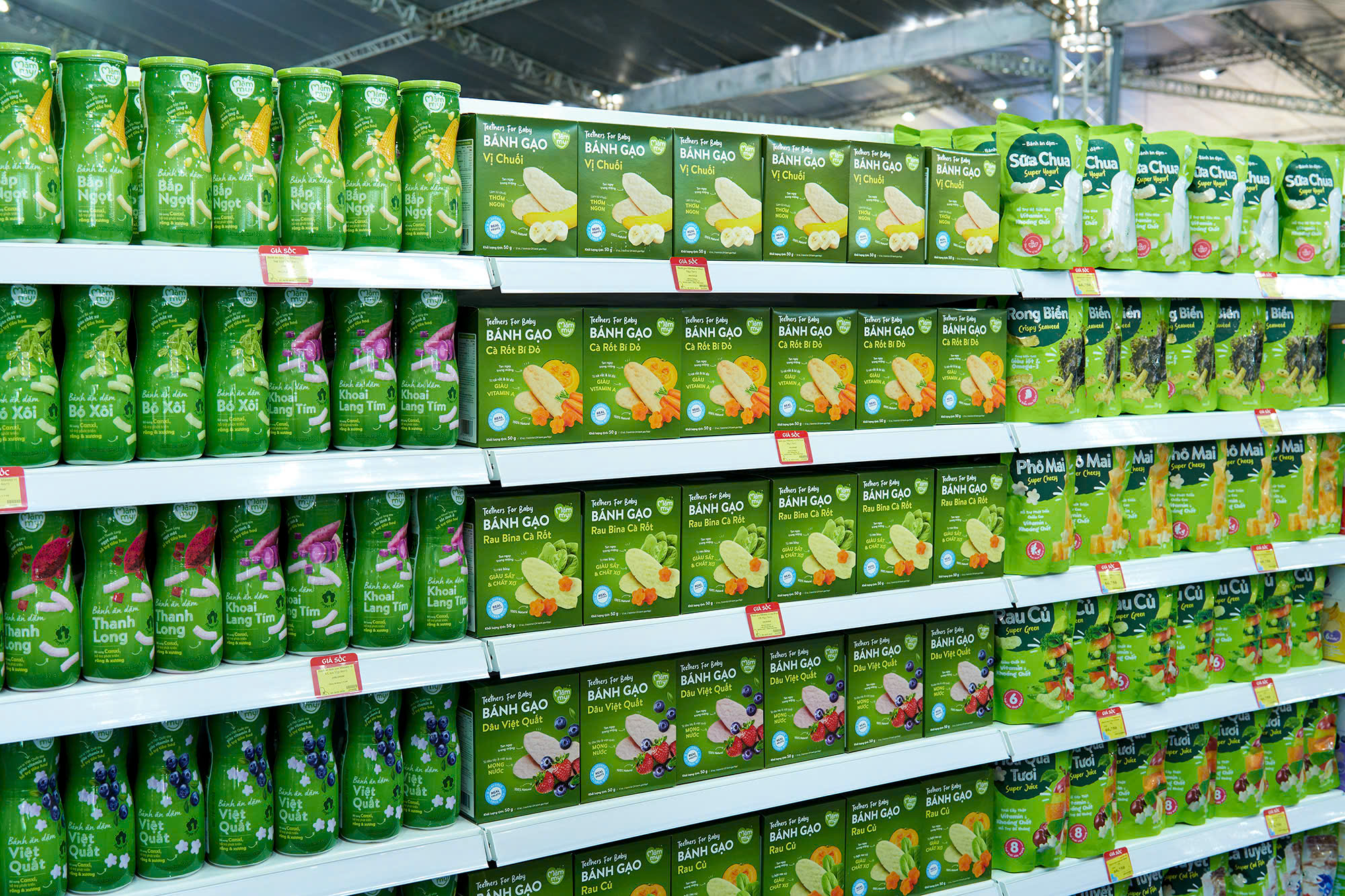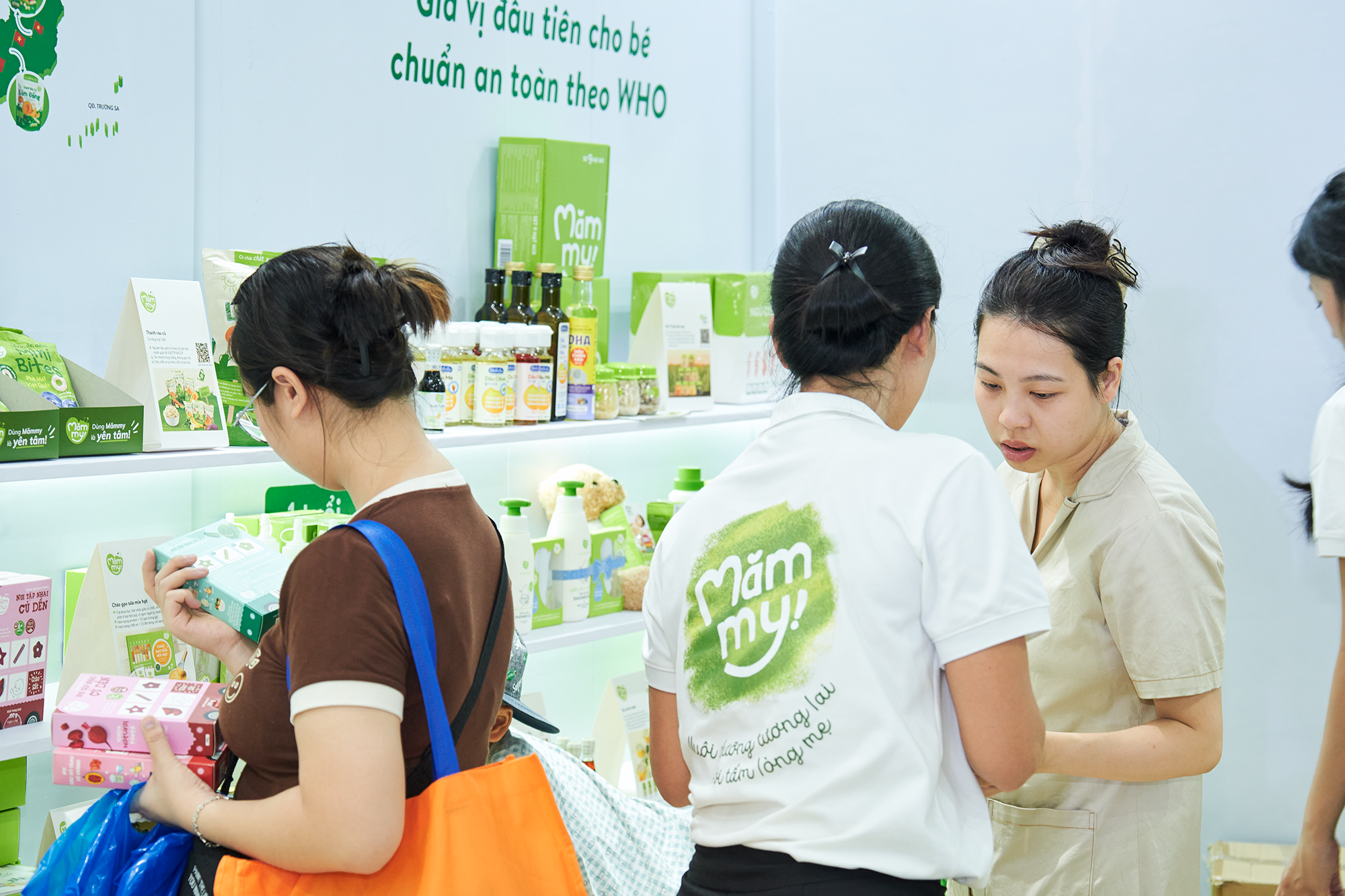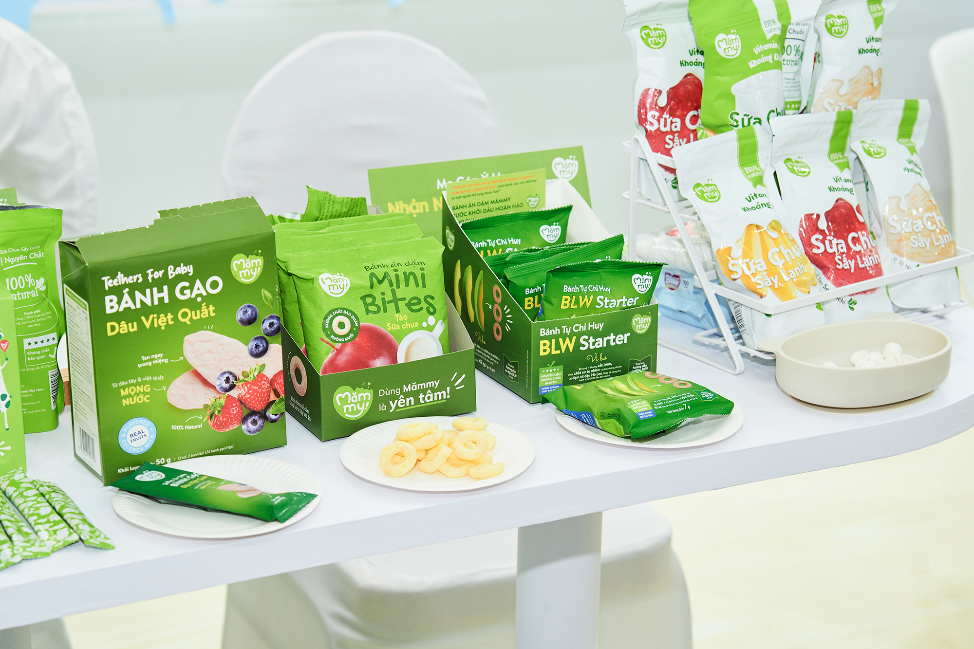 - Trải nghiệm sản phẩm đa dạng: Giới thiệu và cho bé dùng thử các dòng sản phẩm chủ lực như bánh ăn dặm, bánh gạo hữu cơ, bánh cuộn nhân kem. Hàng nghìn lượt mẹ và bé đã hào hứng thưởng thức, nhận phản hồi tích cực từ phụ huynh.