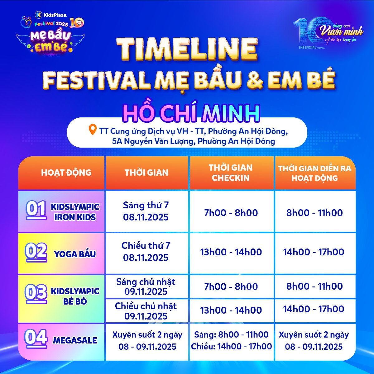 Timeline chi tiết sự kiện Festival Mẹ bầu và Em bé 2025 tại khu vực Hồ Chí Minh