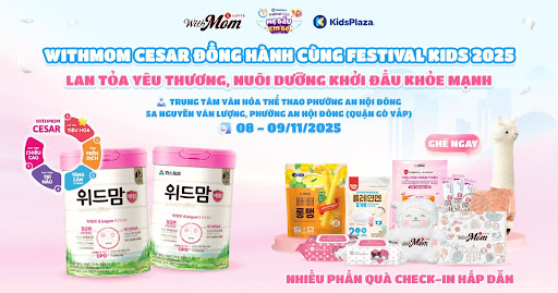 Cùng Withmom Cesar gặp gỡ, trải nghiệm và lan tỏa yêu thương tại sự kiện Festival Kids 2025 từ ngày 08 – 09/11 tại TP. HCM – sự kiện dành cho mẹ & bé với nhiều hoạt động thú vị, quà tặng hấp dẫn và chia sẻ dinh dưỡng hữu ích.