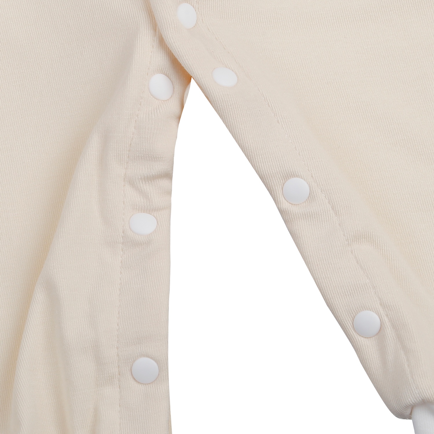 Thiết kế bo viền tại cổ tay và cổ chân giúp giữ ấm tốt hơn, phù hợp với bé mặc vào mùa thu đông hoặc trong phòng điều hòa.