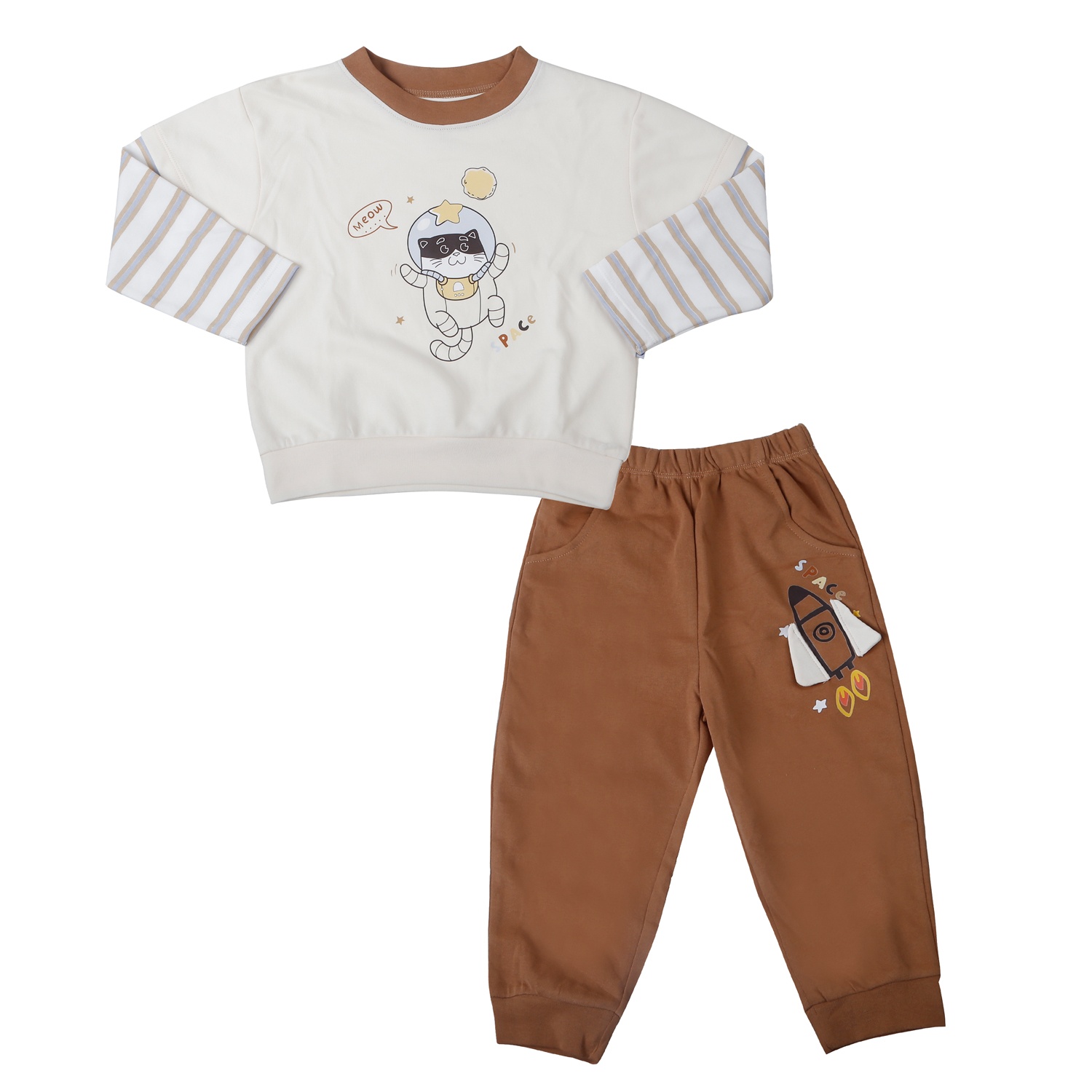 Bộ đồ bé trai KidsPlaz mèo vũ trụ HN25D (Nâu be)