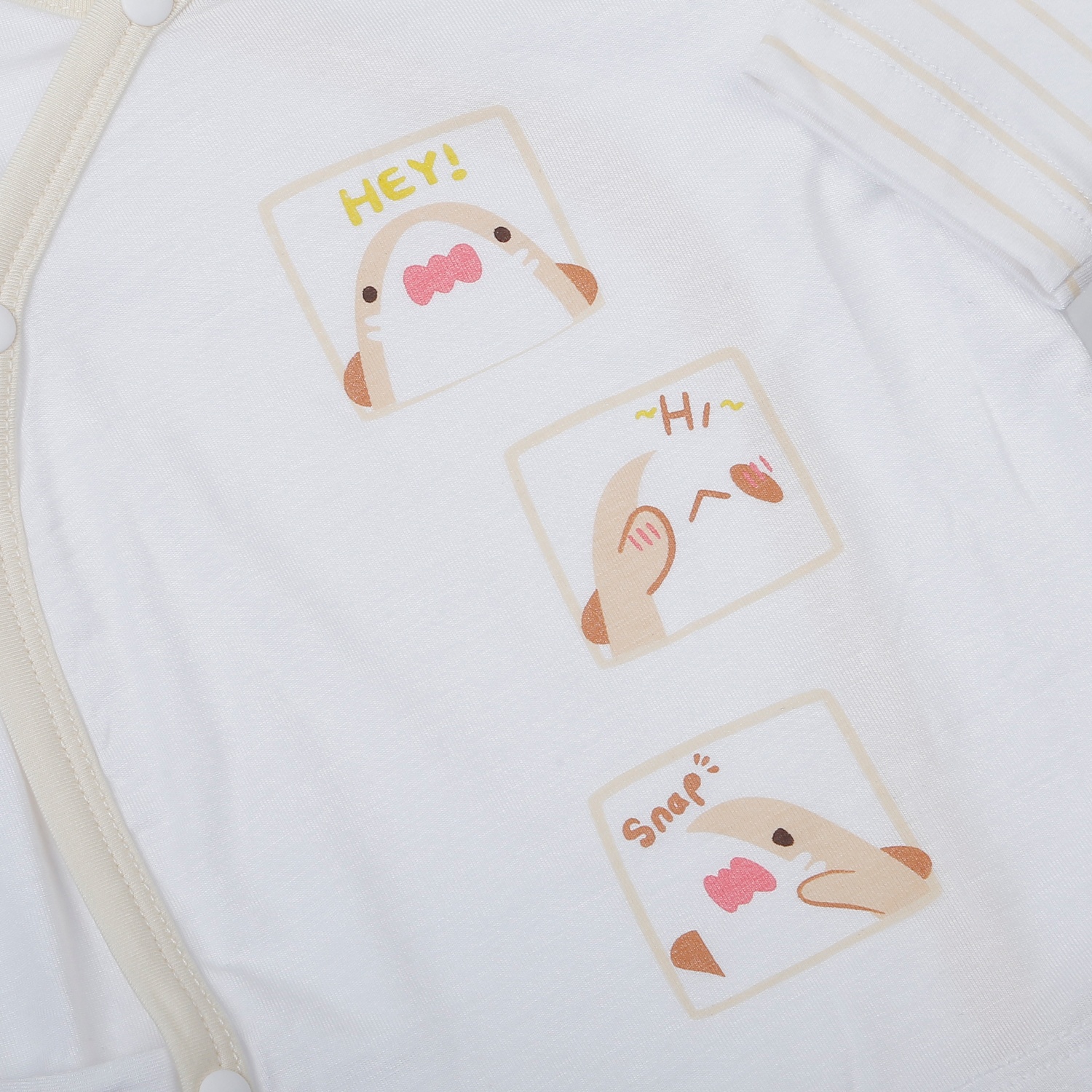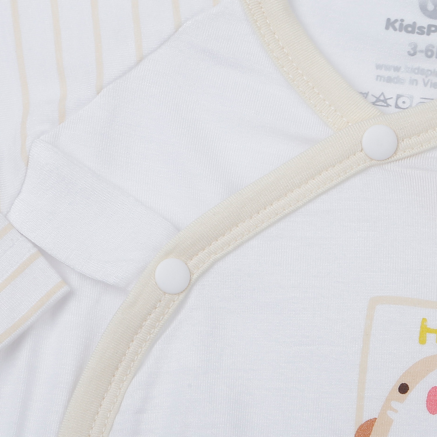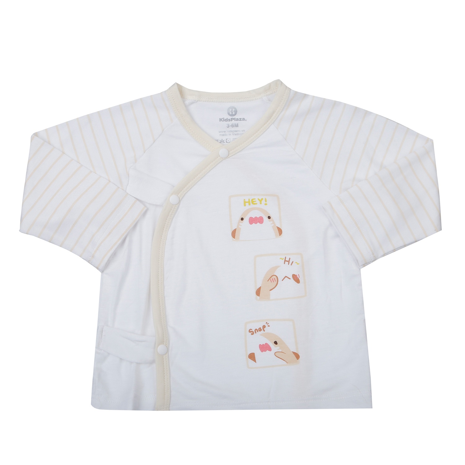 Bộ quần áo dài tay cài lệch KidsPlaza sọc in 3 cá TT25H (Trắng)