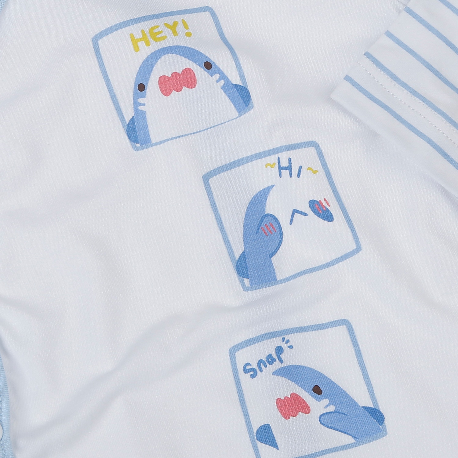 Bộ quần áo dài tay cài lệch KidsPlaza sọc in 3 shark TT25H (Trắng xanh)