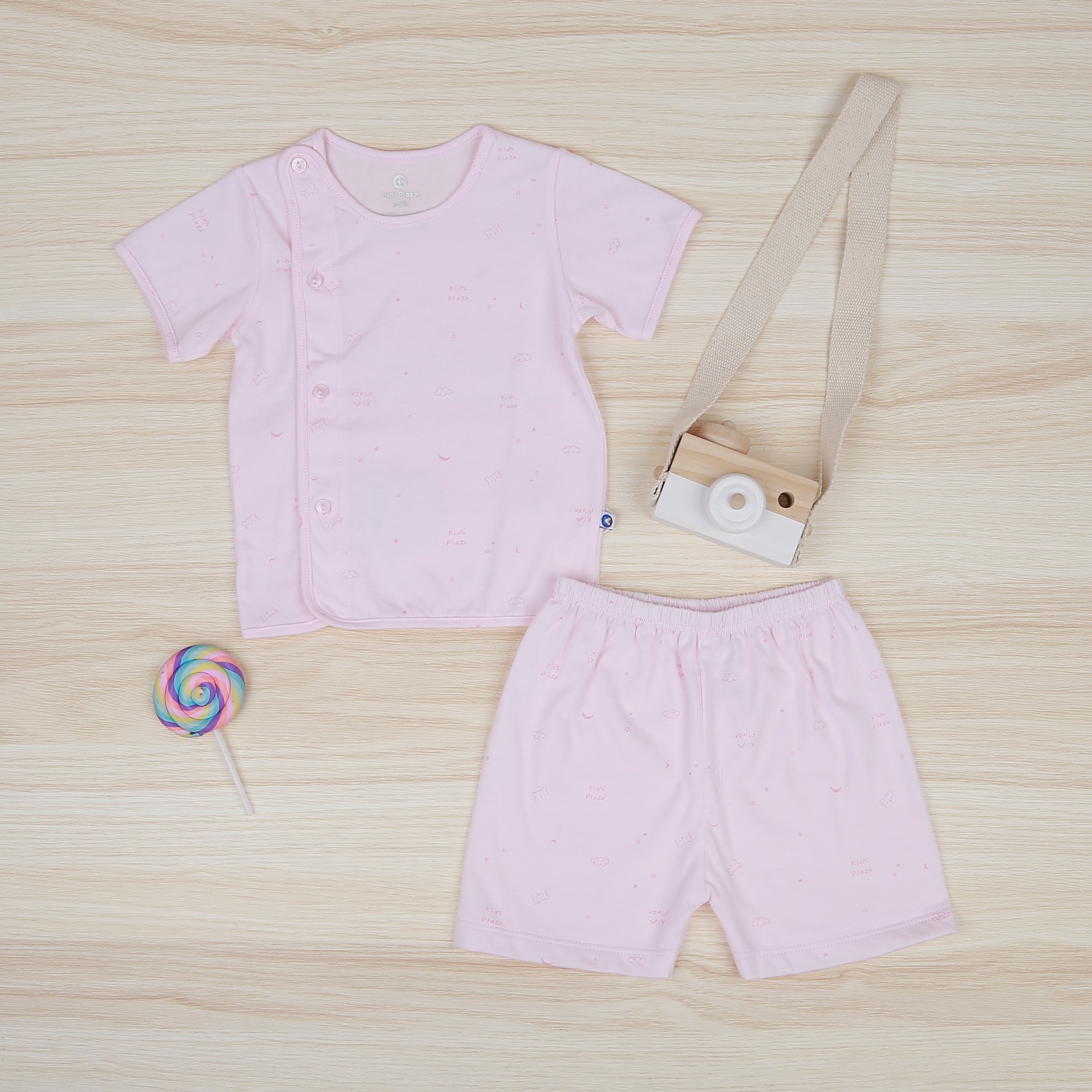 Tên sản phẩm: Bộ quần áo sơ sinh cộc tay KidsPlaza in hình NBA22 (Hồng)