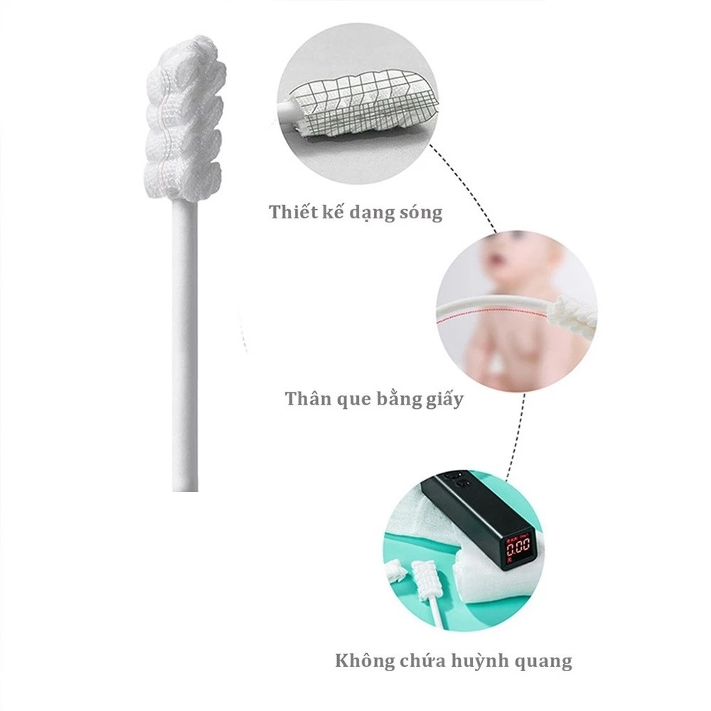 Phần que gạc có thiết kế từ giấy có kích thước đủ dài và chắc chắn, an toàn với môi trường, đặc biệt không gây kích ứng. Nhờ cấu tạo tiện lợi này sẽ giúp đảm bảo quá trình vệ sinh, hạn chế được vi khuẩn gây bệnh đi vào theo đường tay.