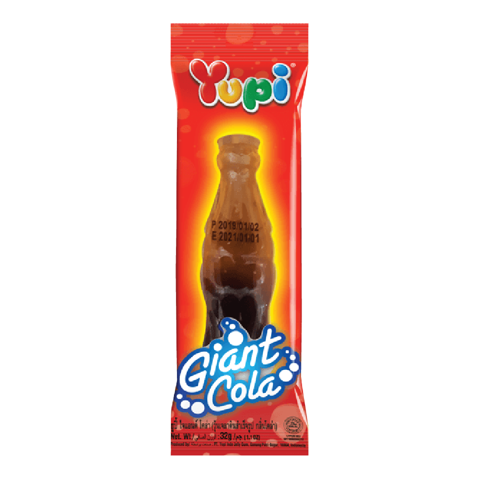 Kẹo dẻo Giant Cola Yupi 28g Vị cola ngọt, mềm dẻo, dễ nhai . Mang hương cola đặc trưng, kẹo dẻo mềm dai, dễ ăn và phù hợp với nhiều người, cả trẻ em lẫn người lớn.