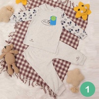 Quần áo sơ sinh cài vai in chuột Mickey Mamago (Ghi) 6-24M