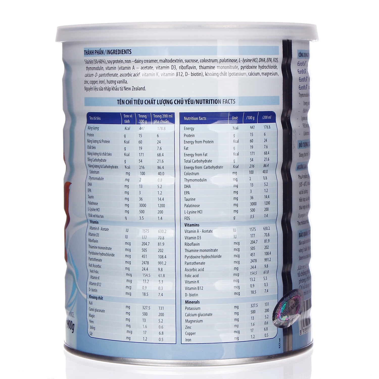 Cung cấp cho bé FOS là chất xơ hòa tan giúp hệ tiêu hóa của trẻ hoạt động tốt hơn, đồng thời Colostrum, Thymomodulin và các vitamin, khoáng chất giúp trẻ có hệ miễn dịch khỏe mạnh.
