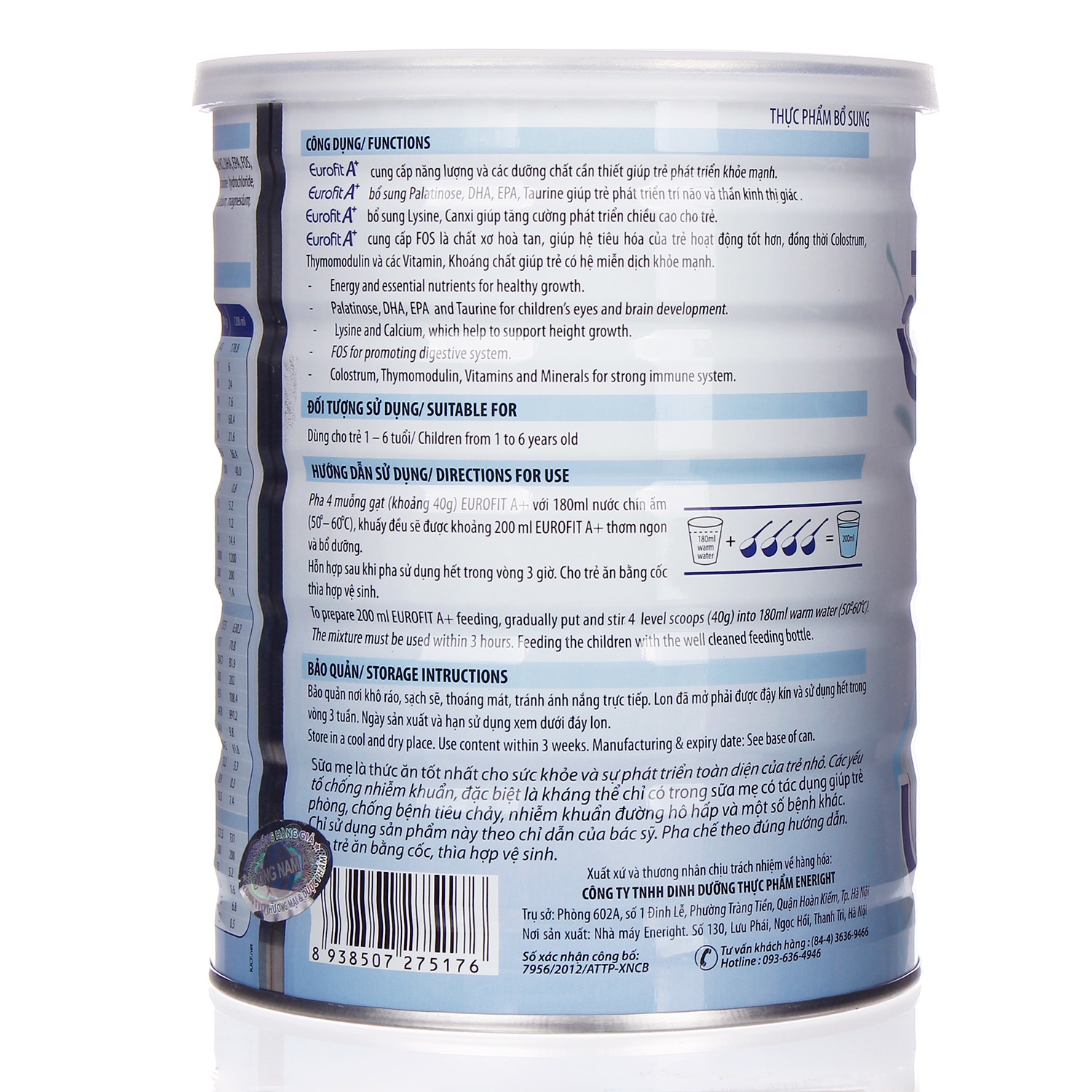 Sữa bột Eurofit A+ dành cho trẻ từ 1-6 tuổi.