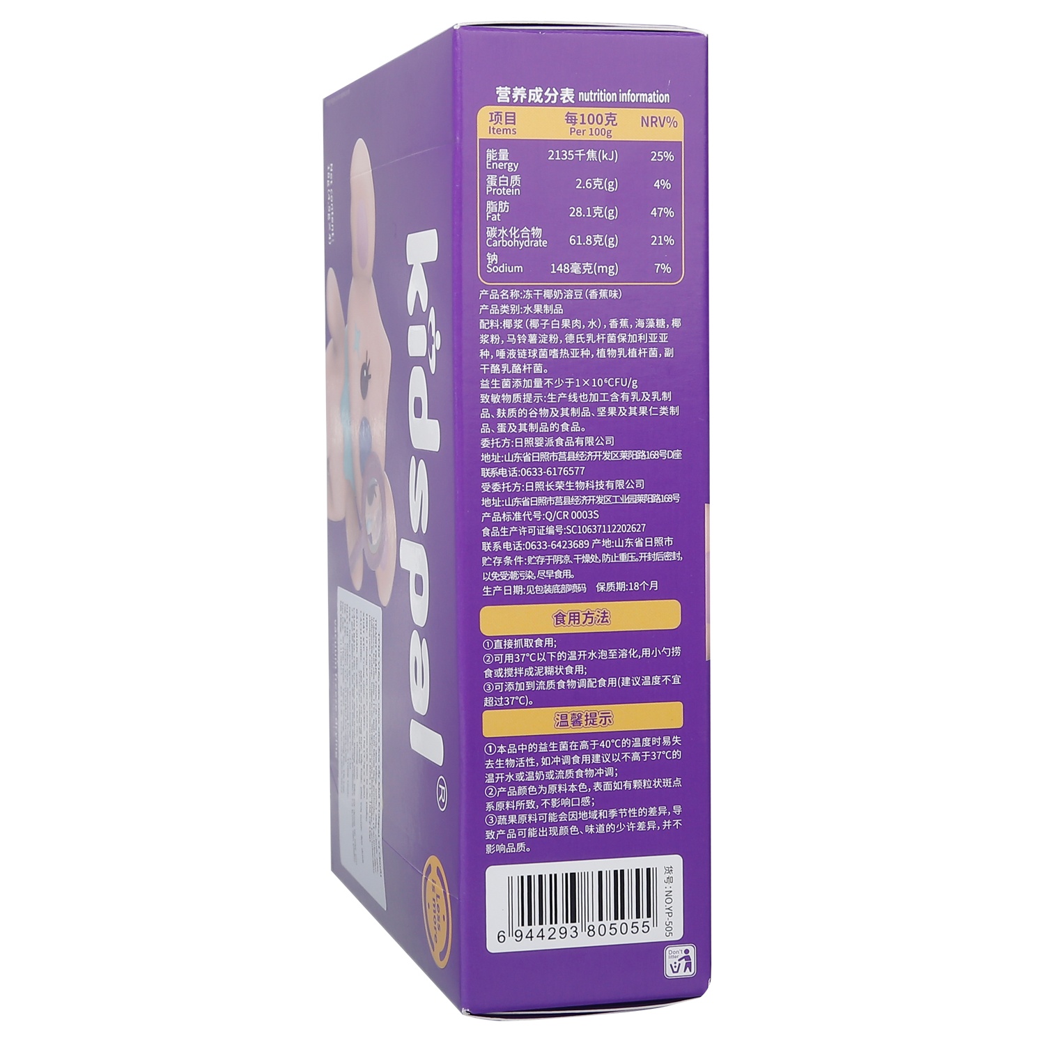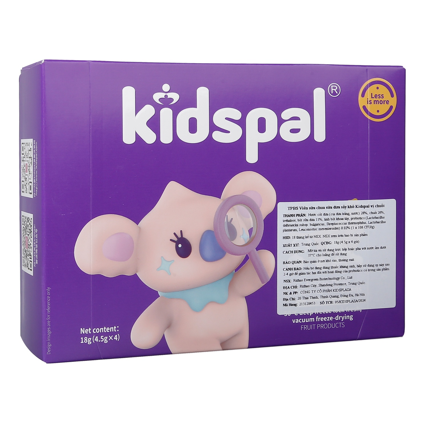 - Sữa chua sữa dừa sấy khô Kidspal vị chuối có nhiều chất dinh dưỡng và các lợi khuẩn giúp trẻ tiêu hóa tốt hơn, tối ưu khả năng hấp thu, đảm bảo dinh dưỡng cho bé.