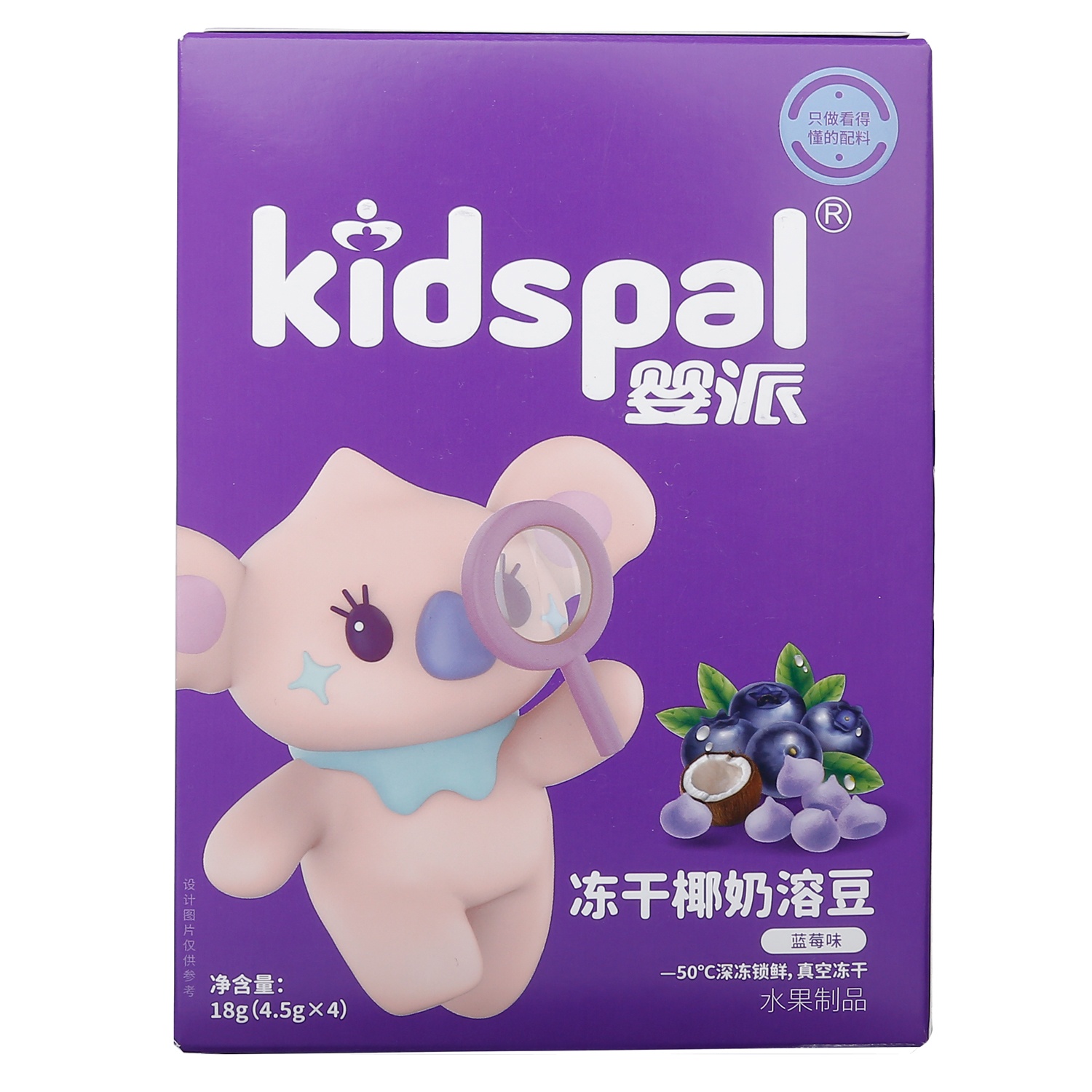 - Sữa chua sữa dừa sấy khô Kidspal vị việt quất có dạng viên, dễ tan trong miệng bé, giúp tránh việc bé bị nghẹn khi dùng trong giai đoạn bé ăn dặm, tập nhai.