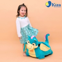 Váy cổ sen in hình hoa Kiza (xanh) Vải cotton co giãn, thám hút mồ hôi tốt Trang trí hình trái tim và chân cún ngộ nghĩnh Màu sắc trang nhã, bắt mắt