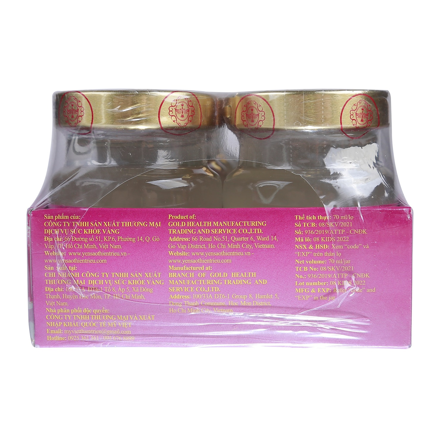 Yến sào cao cấp Thiên Triều KIDS lốc 8*70ml là thực phẩm dinh dưỡng đóng lọ với thành phần chính gồm tinh chất yến sào nguyên chất nên đặc biệt có tác dụng rất tốt cho sức khoẻ của bạn và gia đình. Đặc biệt đây là dòng sản phẩm cung cấp riêng cho trẻ nhỏ với 20 axit amin tăng đề kháng tốt cho bé.